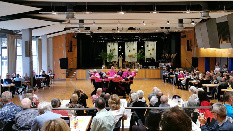 Der Vorsitzende des Vereins begrüßte uns sehr herzlich und überraschte das Publikum mit der Aussage, wenn es los geht, werde man schon wissen, zu welchem Thema getanzt wird. Klar wurde das von den Zuschauern erkannt und die Elton John Choreo kam sehr gut an.