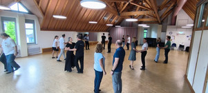 Der dritte Teil des Tages war dem Wiener Walzer gewidmet. Der Wiener Walzer wird idealer Weise in einer elliptischen Form im Saal entlang getanzt. Leider kann es aber vorkommen, dass ein anderes Paar im Weg steht. Oder, dass man eine Pause braucht (der Wiener Walzer ist ein echter "Konditionstanz"). Dazu wurde von Philipp die Figur "Wechsel von rechts nach links im Eck" gelehrt. Es ist eine hervorragende Möglichkeit, die anderen Paare an sich vorbeiziehen zu lassen, und erst bei freier Bahn wieder in die Vorwärtsbewegung zu kommen. Und die Figur sieht noch richtig toll aus. Alle anwesenden Tänzerinnen und Tänzer waren begeistert.