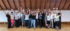Als letzter Workshop dieses Tages stand der Slowfox mit Philipp auf dem Programm. Leider kann hierzu die Autorin dieses Textes nichts mehr berichten, da sie zu erledigt war, um diese Stunde noch mit zu trainieren. Sie ist sich aber sicher, dass die teilnehmenden Tänzerinnen und Tänzer viel Spaß hatten, und in Zukunft die Welle im Slowfox mit besserer Haltung absolvieren werden. Schwofen war es sicher nicht, sondern hartes Training, was der TCN an diesem Samstag im Bürgersaal geboten hat. Aber alle Teilnehmer und Teilnehmerinnen waren begeistert und zufrieden.